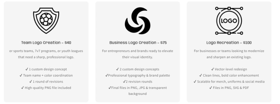 But gear alone doesn’t define a team. Identity does. That’s why Just Grind also specializes in professional logo design that helps teams, leagues, and small businesses stand out with clarity and strength. From bold modern marks to clean minimal designs, our creative team collaborates closely with each client to develop branding that reflects their character, mission, and competitive spirit. Each logo package includes concept drafts, revision rounds, and final polished files in multiple formats, ensuring your brand looks sharp on uniforms, banners, websites, social media, merchandise — everywhere you need to make an impact.