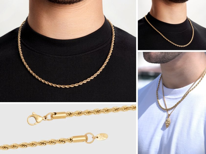 For individuals who favor directional jewellery, our gold compass necklace and elegant gold pendant necklace collections provide distinctive means to convey personal direction and intent. These pieces rest elegantly on the neck and complement our gold rope chain, offering a layered or standalone option in accordance with the wearer's preference. Versatility remains a paramount consideration, enabling men to enhance simple ensembles with ease.