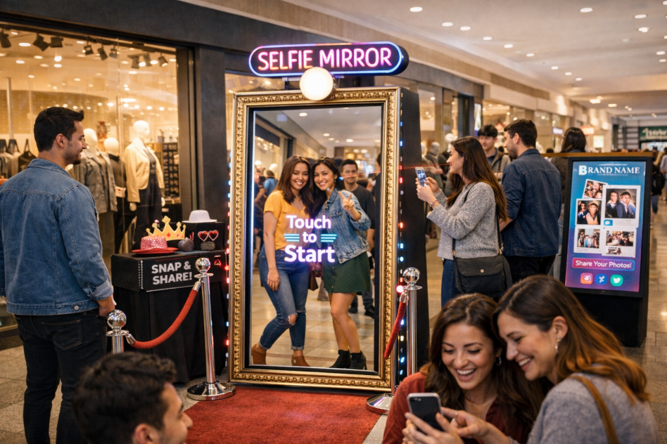 A selfie mirror photo booth adds instant interaction to any commercial space. Its full-length reflective design invites people to pause, explore and engage naturally. Touchscreen prompts, branded visuals and instant sharing options keep users involved while attracting others nearby. This creates a ripple effect that increases dwell time and repeat visits. Ideal for retail and high-traffic locations, it transforms passive footfall into memorable, shareable moments that strengthen brand visibility and customer connection.