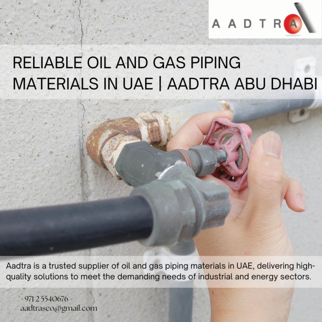 Aadtra is a trusted supplier of oil and gas piping materials in UAE, delivering high-quality solutions to meet the demanding needs of industrial and energy sectors. Based in Abu Dhabi, aadtra specializes in durable pipes, fittings, flanges, and accessories designed to perform under extreme pressure and temperature conditions. With a strong focus on quality, safety, and international standards, the company supports oil and gas projects with reliable materials and timely supply. Aadtra’s experienced team ensures technical support, consistent performance, and long-term value for upstream, midstream, and downstream applications across the UAE.