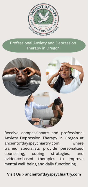 Receive compassionate and professional Anxiety Depression Therapy in Oregon at ancientofdayspsychiartry.com, where trained specialists provide personalized counseling, coping strategies, and evidence-based therapies to improve mental well-being and daily functioning