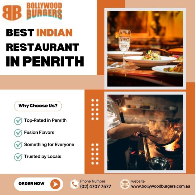 Looking for the best Indian restaurant in Penrith? Bollywood Burgers is the go-to place for mouthwatering Indian fusion burgers, wraps, and sides. Our menu blends authentic Indian spices with modern flavors, creating unique meals loved by locals. From delicious veggie delights to spicy chicken burgers, we serve something for everyone. With a cozy ambiance and friendly service, we make every meal special. Whether dining in with friends or grabbing a takeaway, our food always satisfies. Visit Bollywood Burgers today and enjoy a tasty twist on Indian dining right here in Penrith.