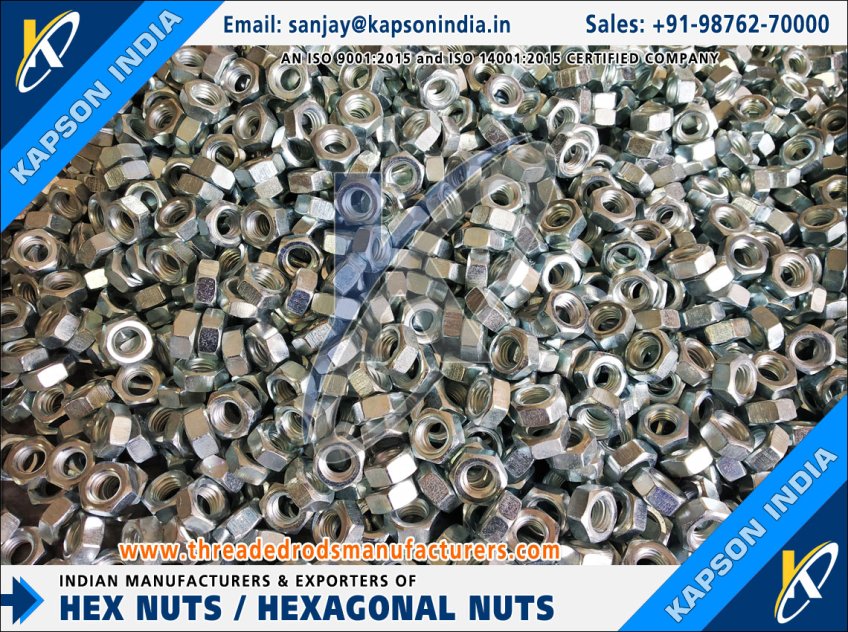 Hexagonal Nuts Fasteners manufacturers exporters in India http://www.threadedrodsmanufacturers.com +91-9876270000