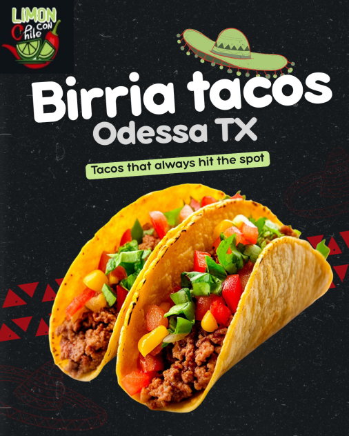 Limon Con Chile #3 serves authentic Birria Tacos in Odessa, TX, packed with slow-braised, juicy beef and bold Mexican spices. Each taco is dipped, grilled to perfection, and served with rich consommé for unbeatable flavor. Visit Limon Con Chile #3 for a true birria experience locals crave.